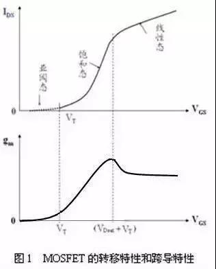 而當柵-源電壓進一步增大,使得VDS<(VGS-VT)時,則MOSFET又將轉(zhuǎn)變?yōu)闇系牢磰A斷的線性工作狀態(tài),于是源-漏電流隨柵-源電壓而線性地增大。這時,跨導不再變化(與柵電壓無關(guān))。