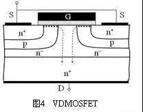 【答】如圖4所示,源-漏電流是從芯片表面向下流動的,并在電流通路的兩側是pn結,因此這種電流輸運的過程,從工作原理上來看,就相當于是一個寄生JFET。從而可以把VDMOSFET等效為一個MOSFET與一個寄生JFET的串聯組合,其中很大部分n-漂移區就相當于是寄生JFET的溝道。