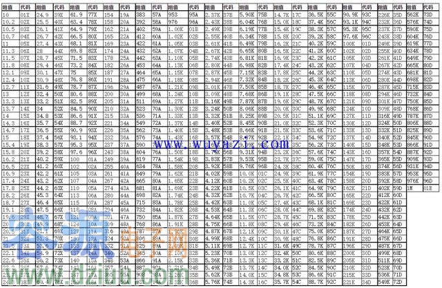| 阻值 | 代碼 | 阻值 | 代碼 | 阻值 | 代碼 | 阻值 | 代碼 | 阻值 | 代碼 | 阻值 | 代碼 | |