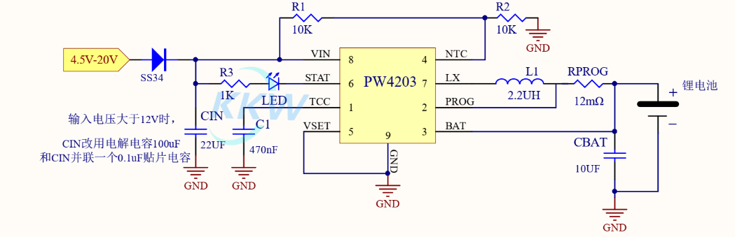 鋰電池充電電路:PW4054