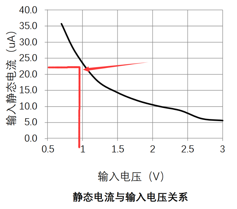 從芯片的輸入電源和輸入靜態(tài)電流的表格可以看到,1V時(shí)的靜態(tài)功耗是20uA多,隨著輸入電壓變大,靜態(tài)功耗會(huì)變小。