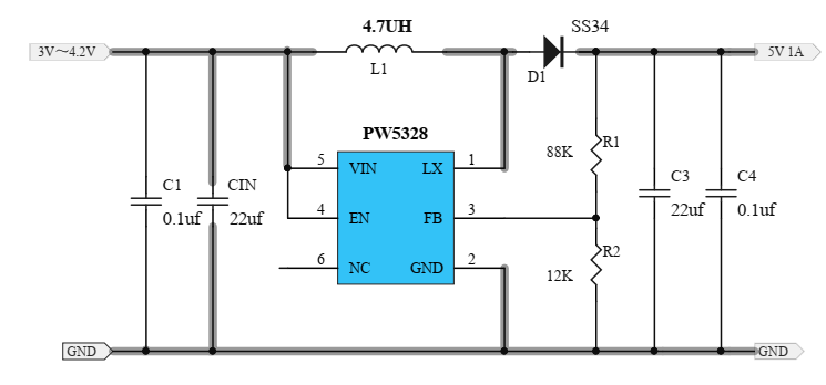 PW5328B是2V-24V輸入的異步升壓芯片,輸出電流可達1A-2A等。