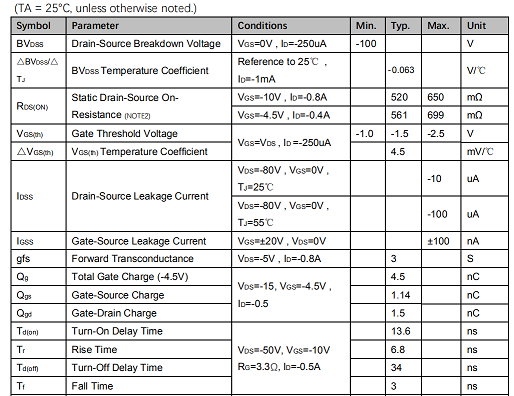 VDS=-100V,ID=-0.9A