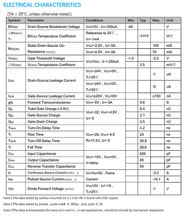 特征 VDS=-40V,ID=-5A RDS(開)<70m&Om" />