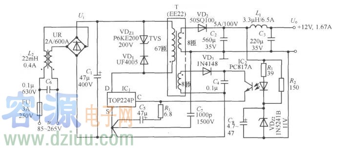 2、開關電源式高耐壓恒流源電路圖