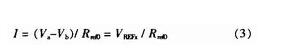 設圖2中參考電阻Rref上下兩端的電位分別Va和Vb,Va即為同相加法器UA1的輸出,當取電阻R1=R2,R3=R4時,則Va=VREFx+Vb,故恒流源的輸出電流就為: