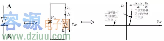 二極管正向導通時的穩態工作點: