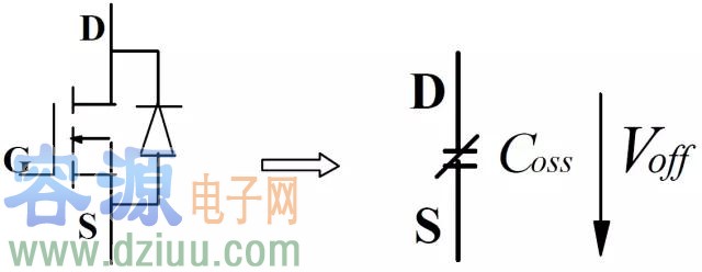 功率 MOSFET 正向截止時可用一電容等效,其容量與所加的正向電壓、環境溫度等有關,大小可從制造商的手冊中獲得。