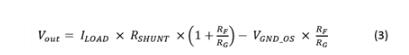 第二個設計要求是要將電阻RG的接地端盡可能地靠近分流電阻(Rshunt)的接地端。當電流流過印刷電路板的接地層時,接地層上會產生壓降,致使印刷電路板上不同位置的接地層電壓出現差異。這會使系統出現偏移電壓。在圖3中,連接到RG的地面電壓源符號代表了地電位的不同。