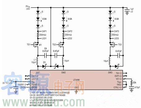 三路輸出LED驅(qū)動共陽極LED串電路分析及浪涌電流防護(hù)方