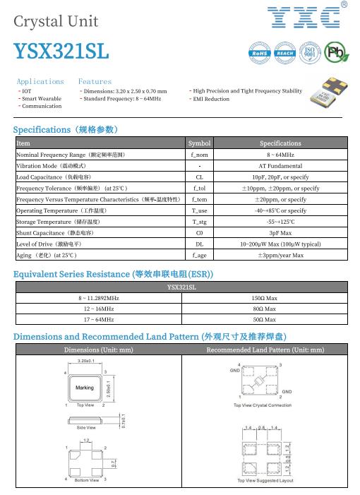 YXC高精度溫補晶振,±2.5PPM,最小尺寸可做到2016,適