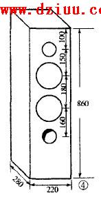 :(1)后箱板上要開二個孔,用于安裝面板和散熱器,開孔尺寸比面板和散熱器每邊各縮小1cm,便于固定螺絲。(2)箱內放置4根支撐木方,用于放置變壓器。變壓器放置在與揚聲器保持