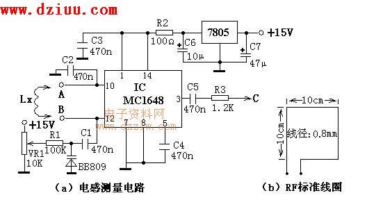 該電路以諧振方法測量電感值,測量下限可達10nH,測量范圍很寬,能滿足正常