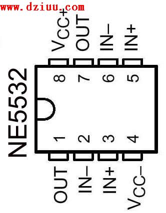 NE5532(JRC4558)引腳:1為運(yùn)放輸出,2為反相輸入端,3腳為輸入. 5腳為另一運(yùn)放同相輸入,6腳反相輸入,7腳輸出. 4腳為負(fù)電壓,8腳正電壓.