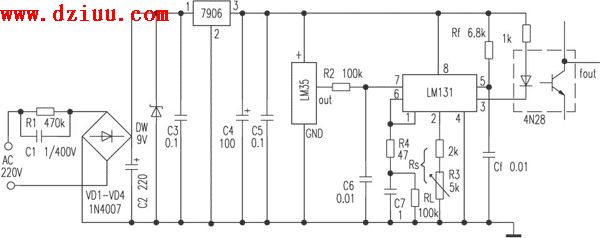 該電路中的電位器Rs是用來調(diào)節(jié)LM131的輸出,即本電路可通過調(diào)節(jié)Rs來