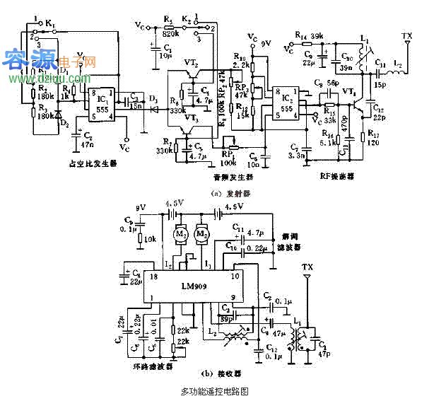 介紹基于555電路的多功能遙控電路