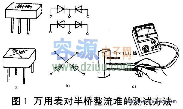 1.半橋的檢測半橋是由兩只整流二極管組成,通過用萬用表分別測量半橋內部的兩只二極管的正、反電阻值是否正常,