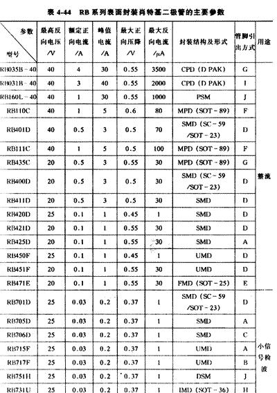 常用的表面封裝肖特基二極管有FB系列,其主要參數見下表。