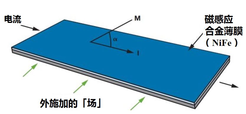 基于AMR原理的傳感器的材料電阻率取決于相對于電流方向的磁化方向。AMR傳感器是在磁飽和狀態下工作,因此外加的磁場的主導了電阻變化。當外磁場和電流方向平行時,電阻最大;而當施加的電場垂直于載流磁感應合金的平面時,電阻最小。圖1顯示了AMR傳感器工作原理的簡化圖。