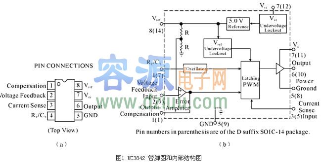 UC3842 內部組成框圖如圖1