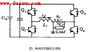 單相逆變器采用全橋電路, 通過三態滯環控制方式在兩橋臂的中點得到一系列脈沖調制波,