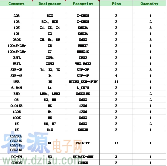 6. CS5305/CS5310/CS5315/CS5318 DEMO板物料清單