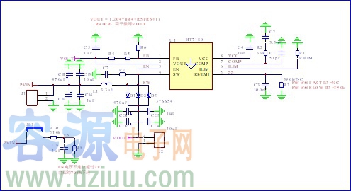 但是輸出端如果需要輸出大電流負載(例如:輸出電流大于 200mA),為了提高工作效率,建議使用較大一點的電感。