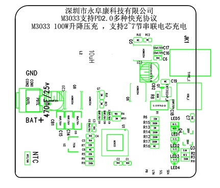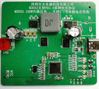深圳市永阜康科技有限公司現(xiàn)在大力推廣成都水芯電子的一顆內(nèi)置PD2.0/QC2.0等快充協(xié)議多節(jié)100W升降壓鋰電充電管理芯片M3033,可支持2-7串鋰電快速充電,滿足多串大容量鋰電池組應(yīng)用場合。高度集成的芯片設(shè)計,可以做成很小體積的成品,應(yīng)用簡單,直接使用Type-C充電,無需專用充電器、避免資源浪費。