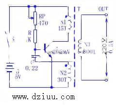 是反饋繞組極性問題,用極性判別法進(jìn)行判別或?qū)⒗@組N1或N2反接后再試,圖中有“·”標(biāo)志的為同名端。當(dāng)電網(wǎng)停電時(shí),本電路輸出頻率為50Hz,電壓為220V±5%的交流電,對(duì)用電設(shè)備保證臨時(shí)供電。
