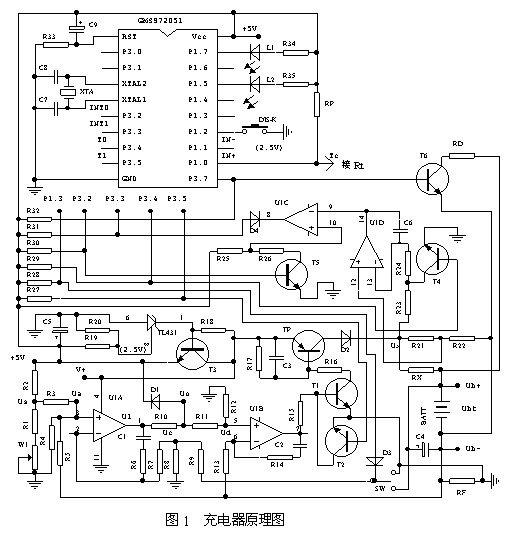 介紹一種性價比高的可對鎳鎘、鎳氫及鋰離子電池充電的多功能充電器。充電器采用單片機GMS97C2051作編程控制器,其內(nèi)部的比較器用作電池最高溫度檢測,用1片LM324和1支TL431以及若干分立元件構(gòu)成恒壓—恒流電路、電壓檢測電路、基準(zhǔn)電壓源(兼作單片機電源)電路。