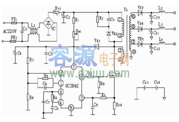 接輸出電壓取樣信號,也稱反饋信號。 <<版權聲明:本文由容源電子網(www_dziuu_com)整理提供,部分內容來源于網絡,如有侵犯到你的權利請與我們聯系更正。》