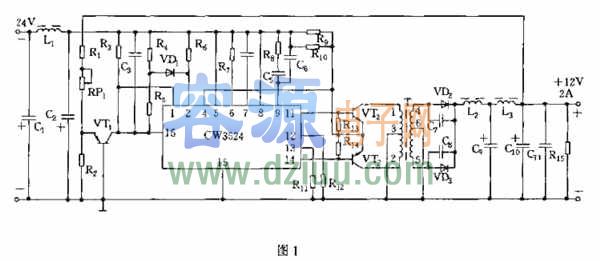 由CW3524型集成脈寬調制器組成的雙端開關穩壓電源,輸出電流為2A,輸出電壓為+12V。CW3524是本電源的核心元件,并直接向功率轉換電路的開關功耗提供脈寬調制信號。《版權聲明:本文由容源電子網(www_dziuu_com)整理提供,部分內容來源于網絡,如有侵犯到你的權利請與我們聯系更正。》