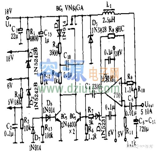5V-10V-10A的VMOS開(kāi)關(guān)電源電路 <<版權(quán)聲明:本文由容源電子網(wǎng)(www_dziuu_com)整理提供,部分內(nèi)容來(lái)源于網(wǎng)絡(luò),如有侵犯到你的權(quán)利請(qǐng)與我們聯(lián)系更正。》