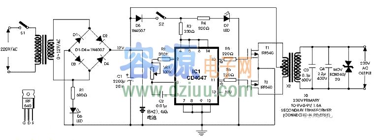 自制小功率UPS <<容源電子網論壇正式上線,為朋友們建立一個友好互動交流平臺,歡迎大家去論壇和朋友們一起分享、學習電子技術。對本文有什么疑問請直接到論壇相應欄目發貼求助。