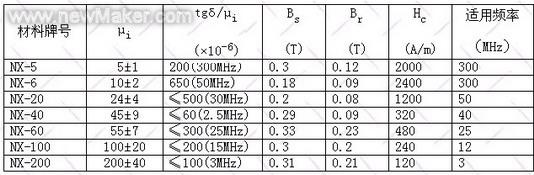 三、Nizncu鐵氧體的性能分析 我們常用的軟磁鐵氧體主要是MnZn、NiZn兩大系列。其中MnZn系產量大、用途廣,適用于低頻1MHz以下,它具有高μi、低損耗和高穩定性的優點。 例如μi可達4×104,μQ積一般為50~100萬(100KHz),最高可達20~300萬。Bs可在0.5T以上,Hc可在1OA/m以下,ρ為lOΩ/m ,αμ/μi與 D/μi為10-5~10-6。NiZn系材料在1MHz以下的低頻范圍內,性能比不上MnZn系,但在1MHz以上,由于它具有多孔性及高電阻率,因而大大優于MnZn系而成為高頻應用中性能最好的軟磁材料。其電阻率ρ可達108Ω/m,高頻損耗小(例如NiZn-40在1.5MHz時,tgδ/μi≦60×l0-6,即Q=400~500),故特別適用于高頻1~ 30OMHz。而且NiZn材料的居里溫度較MnZn高,Bs可高至0.5T,Hc亦可小至1OA/m。此外,NiZn系材料可以做到λ大,具有較大的非線性,可在高頻或高頻大功率以及磁致伸縮器件等申應用,又由于NiZn材料在工藝上沒有氧化問題,故制造工藝比MnZn材料簡單。下表2列 出了常用的NiZn系鐵氧體的性能指標。