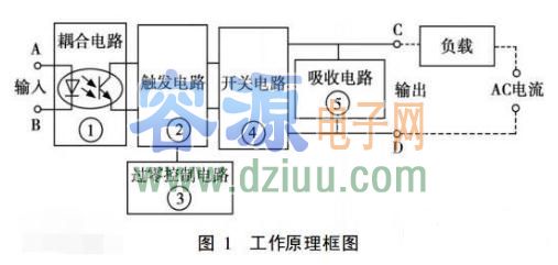 SSR按使用場合可以分成交流型和直流型兩大類,分別在交流或直流電源上做負載的開關,不能混用。下面以交流型的SSR為例明它的工作原理,圖1是它的工作原理框圖,圖1中的部件①~④構成交流SSR的主體,從整體上看,SSR只有兩個輸入端(A和B)及兩個輸出端(C和D),是一種四端器件 。    <<提示:容源電子網為廣大電子愛好者提供電路圖專題網站“容源電路圖網”,歡迎訪問。匯聚大量電路圖與你共同分享。》