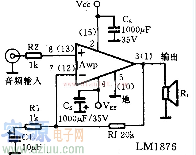 最完美的lm1876電路圖:功率放大電路是一種以輸出較大功率為目的的放大電路。它一般直接驅動負載,帶載能力要強。輸出功率大,效率要高,非線性失真要小,散熱少。 :