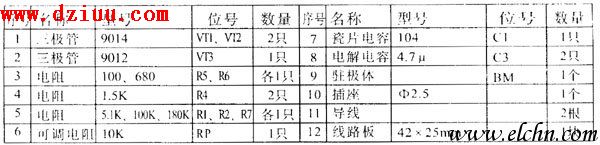 VT l、VT2采用N PN型的9 01 4三極管,VT3采用P N P型的90 12 三極管。