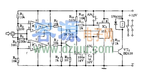 本電路可以根據(jù)音頻信號(hào)的用無來自動(dòng)關(guān)閉音像設(shè)備,當(dāng)然不能自動(dòng)開機(jī),可以在自己家里使用,也可以在其他場合使用,電路可靠,制作方便,元器件又少,元器件參數(shù)請(qǐng)見電路圖, <<版權(quán)聲明:本文由容源電子網(wǎng)(www_dziuu_com)整理提供,部分內(nèi)容來源于網(wǎng)絡(luò),如有侵犯到你的權(quán)利請(qǐng)與我們聯(lián)系更正。》