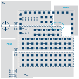 圖2.分開的AGND和PGND在接地標簽下方利用過孔連接。