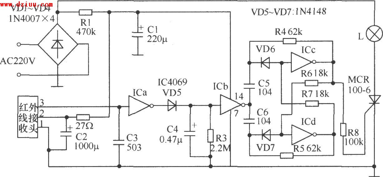 下面為大家提供一款簡易家用電器紅外遙控接收電路,電路簡單實用,本文由www.gsdpw.cn整理提供,部分內容來源于網絡,如有侵犯到你的權利請與我們聯系更正。
