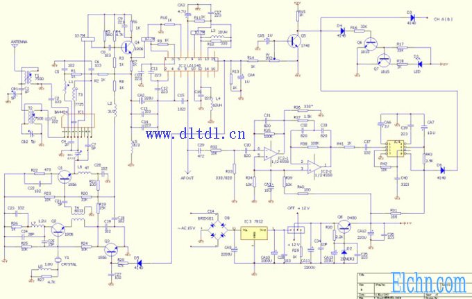 由IC1 (BA4424),本振回路(Q1,Q2)及外圍元件組成。