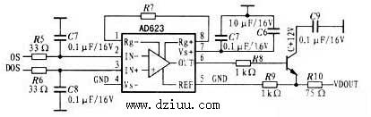 AD623集成了3路運(yùn)放.可單電源或雙電源工作,具有較高的CMRR和極低的電壓漂移,除了一個(gè)控制可編程增益的外接電阻外,