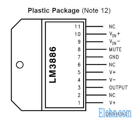 ·LM3886有兩種型號:LM3886TF和LM3886T,前者散熱片絕緣,后者不絕緣。