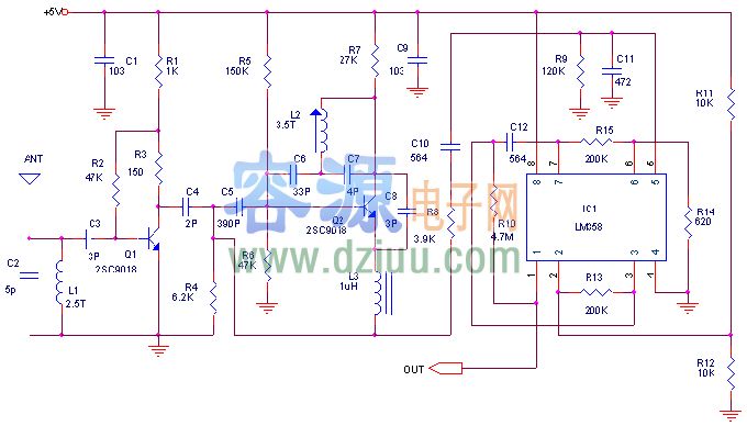 的超再生電路靈敏度和一級(jí)高放、一級(jí)振蕩、一級(jí)混頻以及兩級(jí)中放的超外差接收機(jī)差不多。然而,超再生電路的工作穩(wěn)定性比較差,選擇性差,從而降低了抗干擾能力。下圖為典型的超再生接收電路。 <<版權(quán)聲明:本文由容源電子網(wǎng)(www_dziuu_com)整理提供,部分內(nèi)容來源于網(wǎng)絡(luò),如有侵犯到你的權(quán)利請(qǐng)與我們聯(lián)系更正。》