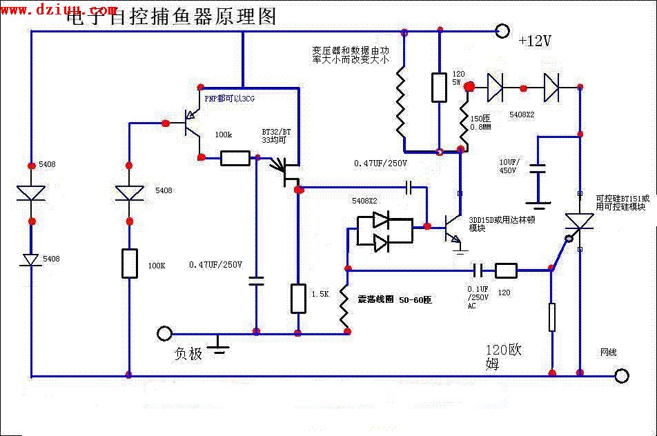 為大家提供一個(gè)分離元器件的電子捕魚器電路圖,元器件少,制作簡單,成功率高.
