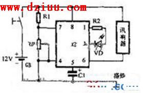 頻率的脈沖振蕩信號,且(6)腳輥出低電平,使訊響器發出報警聲。 <<版權聲明:本文由容源電子網(www_dziuu_com)整理提供,部分內容來源于網絡,如有侵犯到你的權利請與我們聯系更正!