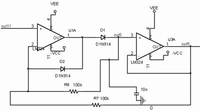 圖3是用集成放大器來實現峰值檢波的電路。