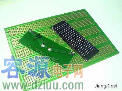 首先剪一小段金屬絲焊接在太陽能電池板的兩個電極上作為引腳(圖3),以便于連接和固定在電路板上。兩塊太陽能電池板是正極對正極,負極對負極(上面有標識)并聯起來使用的,這樣可以有效地增強太陽能電池板提供電流的能力。安裝好太陽能電池板后如圖4所示。