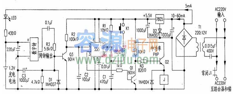 數字鐘的作用只是讓路由器和貓每天休息1.5小時左右。555的作用只是一個延時器,